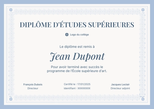 La France offre une large sélection de diplômes officiels, englobant différents niveaux et secteurs d’études. Ces qualifications sont classées conformément à une classification officielle, du niveau 3 (CAP, BEP) jusqu’au niveau 8 (Doctorat).Voici une présentation organisée des principaux diplômes en France : Obtenez un diplôme d’aide-soignante authentique et sûr avec assurance. Obtenez un diplôme d’aide-soignante authentique et sûr avec assurance.